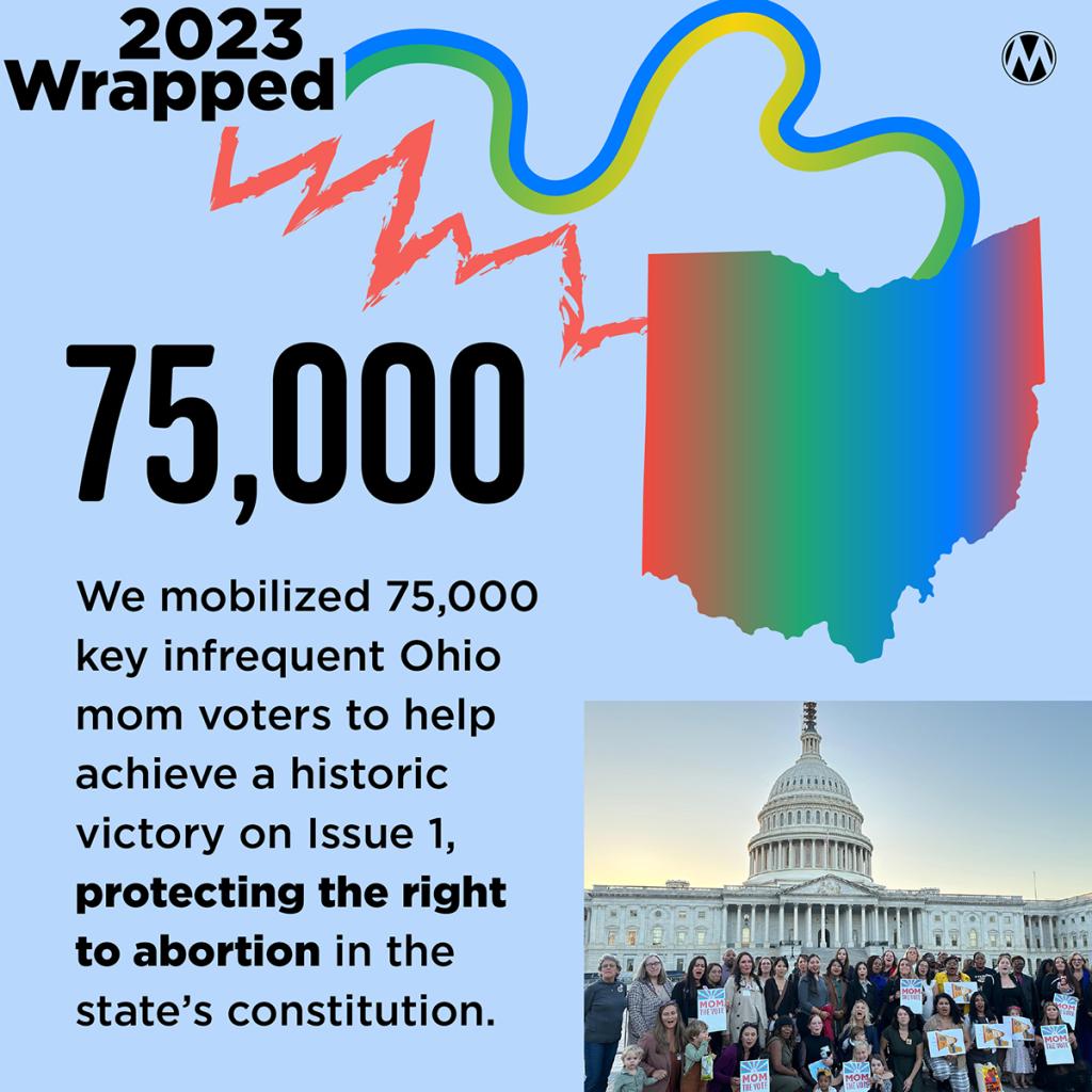 WIN - Securing Abortion Rights In Ohio: MomsRising helped get out the vote that resulted in a historic victory to ensure our children don’t have fewer rights than we do by passing Ohio’s Issue 1, a ballot initiative that protects the right to abortion in the state.