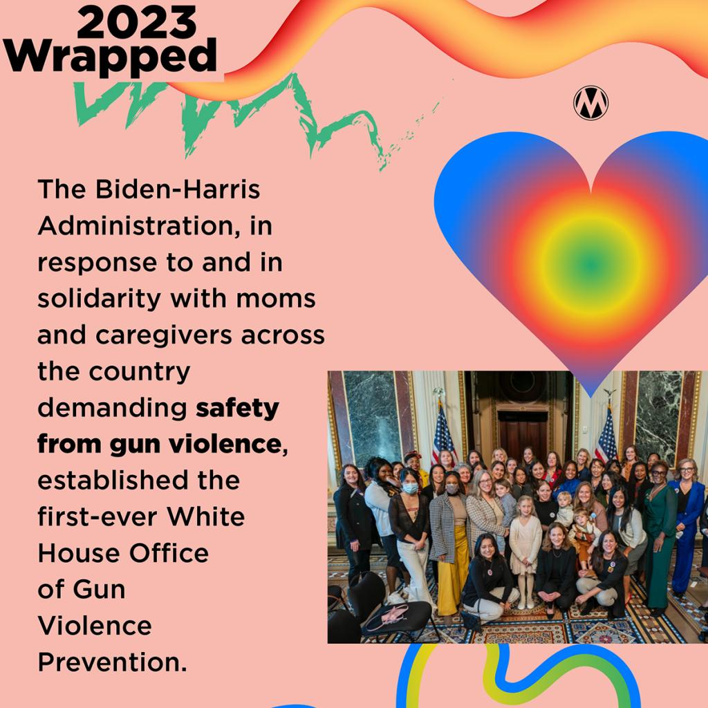 WIN - Enlisting Powerful Support for Gun Safety: In response to and in solidarity with moms and caregivers across the country who are demanding safety from gun violence, the Biden/Harris administration established the first-ever White House Office of Gun Violence Prevention.