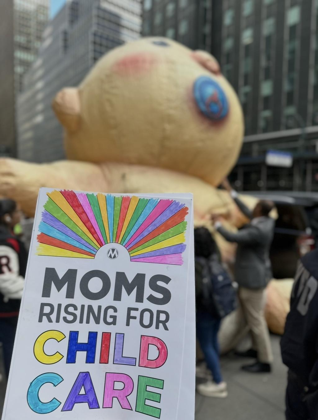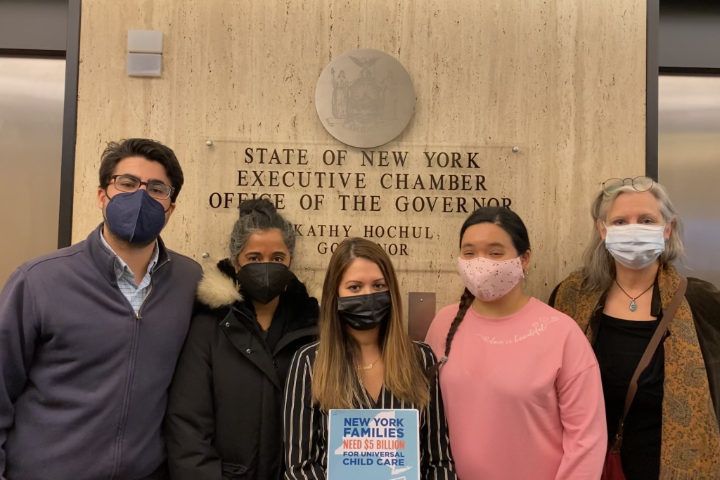 We rallied in front of Gov. Hochul’s office with our big baby to lift up child care!