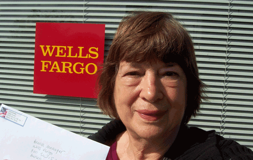 This afternoon I walked into my local Well Fargo Branch and gave the letter, along with a small stuffed animal, to a teller. I explained it, asked her to give it to the manager, and left. She accepted it politely. I forgot to take a picture.