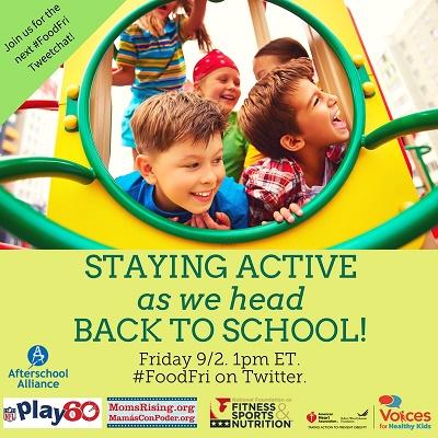 Tweet: Let's discuss how kids can stay active this #backtoschool season http://ctt.ec/xIAwi+ Join #FoodFri 9/2, 1pET. Spread the word & #retweet