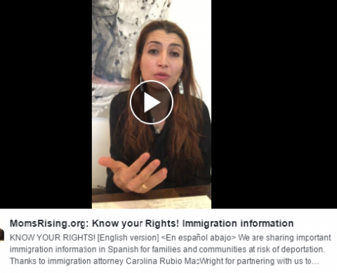 *SPANISH – Click & share the Spanish version: ¡Conoce tus derechos! Información en español en este video con abogada de migración: https://www.facebook.com/MomsRising.org/videos/10154155207541610/