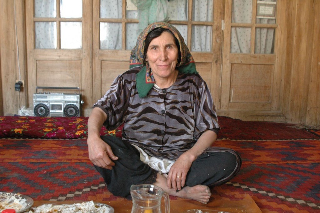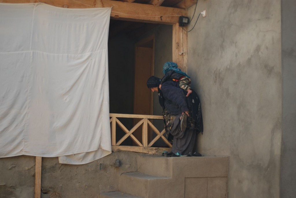 The elderly matriarch of the family carries the youngest child up the stairs on her back. With so many responsibilities falling on the shoulders of the women in the family, every extra pair of hands helps. The day starts at 4 am to milk the cow, boil the water and start baking the bread that they cook in their backyard tandoors. For special occasions the women slave over an open fire stirring a mixture of walnuts milk and salt, which they serve with a crepe stuffed with homemade feta cheese and is then drowned in butter.