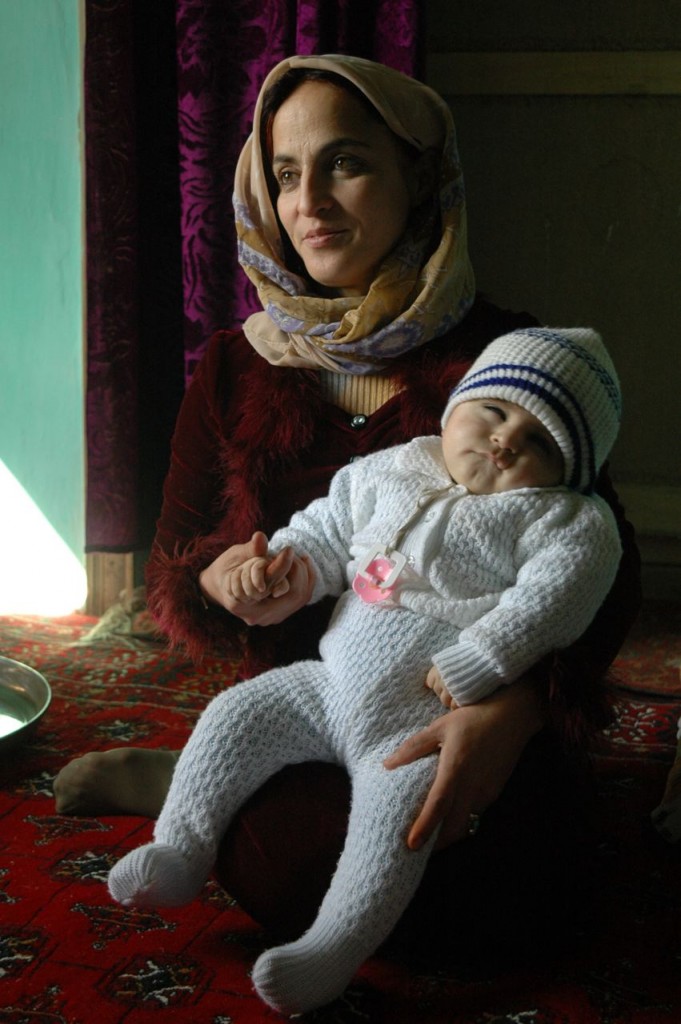 Deep in the mountains of Badakshan one can find the most spectacular scenery, and the most photogenic people. Recently while working on the 10x10 project profiling young girls and education, we came across a family who was living on the edge of a cliff with absolutely nothing and no one around except mountains. Sensing that winter was most likely unbearable, we emptied our suitcases of socks and sweaters to keep them warmer during the harsh season. The family of four children were ecstatic with the new white socks and put them all on at the same time.