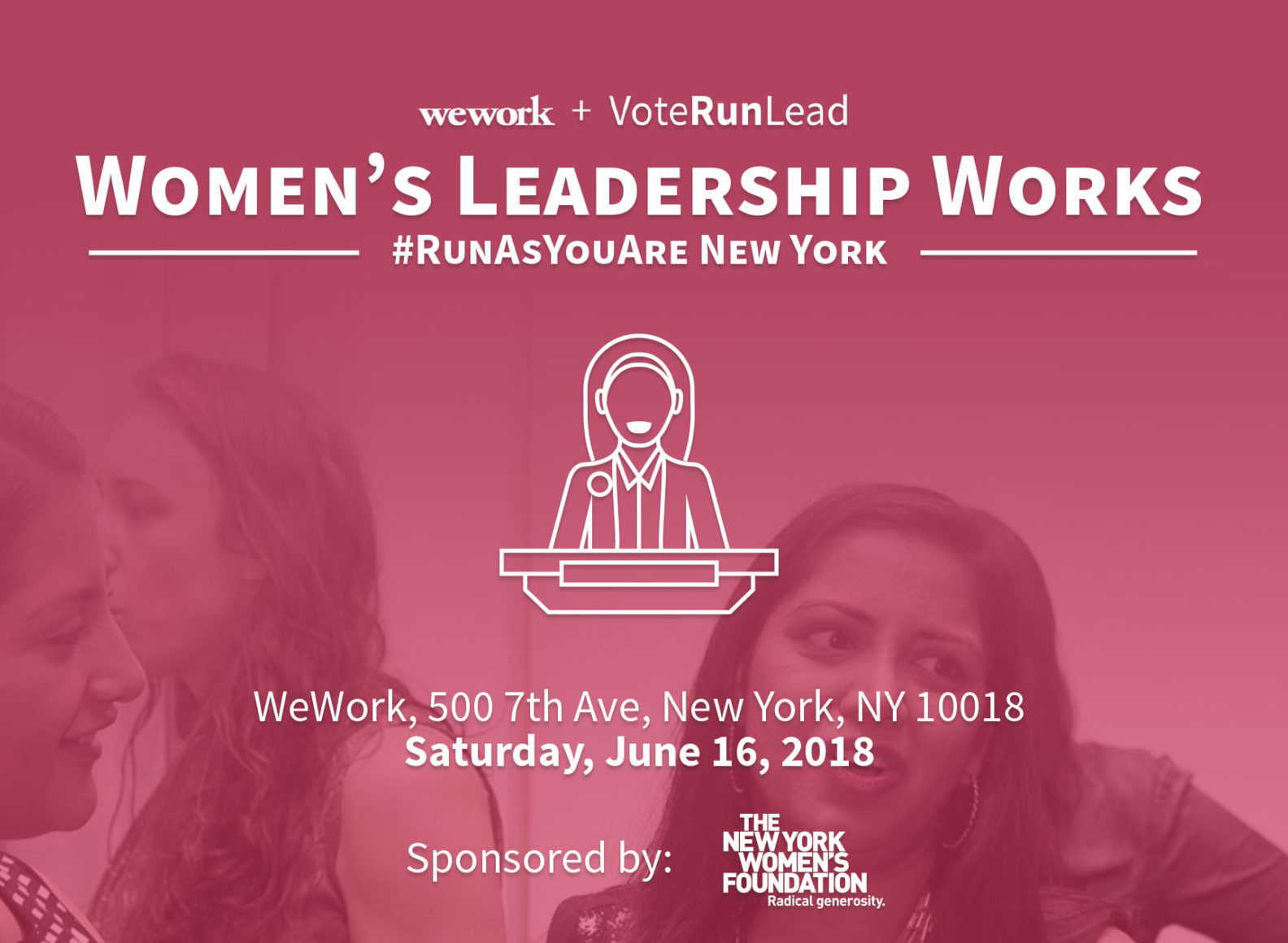 Ready to learn more? Don't wait -- the time to sign up is now! https://www.eventbrite.com/e/wework-voterunlead-present-womens-leadership-works-runasyouare-new-york-training-tickets-45990733522