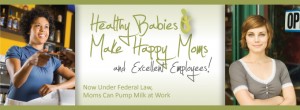 Health care reform was intended to address this problem last year-- for the first time, the Fair Labor Standards Act (FLSA) was amended to require employers to provide nonexempt nursing mothers with reasonable break time and a sanitary, private space, that is not a bathroom, to pump milk at work. While this new federal law spotlighted an important health issue and helped remove the workplace as a barrier to breastfeeding, there is still much to be done to educate businesses about lactation programs and workplace support for nursing mothers.