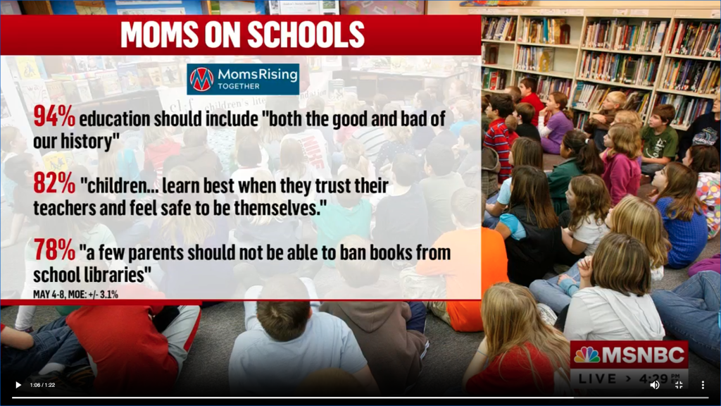 I have hope that caring parents, grandparents, educators, students, and community members can organize and turn the tide and protect our children's freedom to learn so they can grow into the unique and wonderful people they want to be. Many school boards have been inundated with requests but they are pushing back. For example in North Carolina the Wake County School Board rejected all 189 complaints filed by Moms for Liberty, none of which were from parents in the schools where they filed complaints.