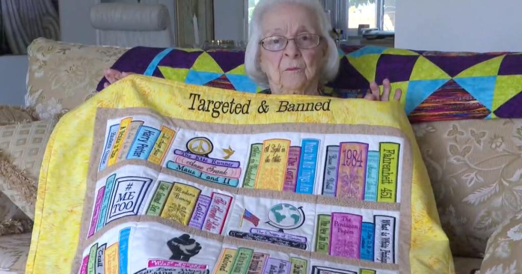 The truth is, the majority of mom voters believe a few parents should not be able to ban books for an entire school or district. That’s why it’s imperative for the rest of us to be as noisy and well-organized as the self-appointed censors are. Fortunately we have many examples to inspire us such as Grace Linn, the 100-year-old Floridian who spoke out at the Martin County School Board meeting against banning books. She even made a wonderful quilt dedicated to the many important books that have been banned over the years! “Remember that in Nazi Germany, they started that book banning...they burned books. When you burn books, you try to take control, and that's not good,” said Linn.