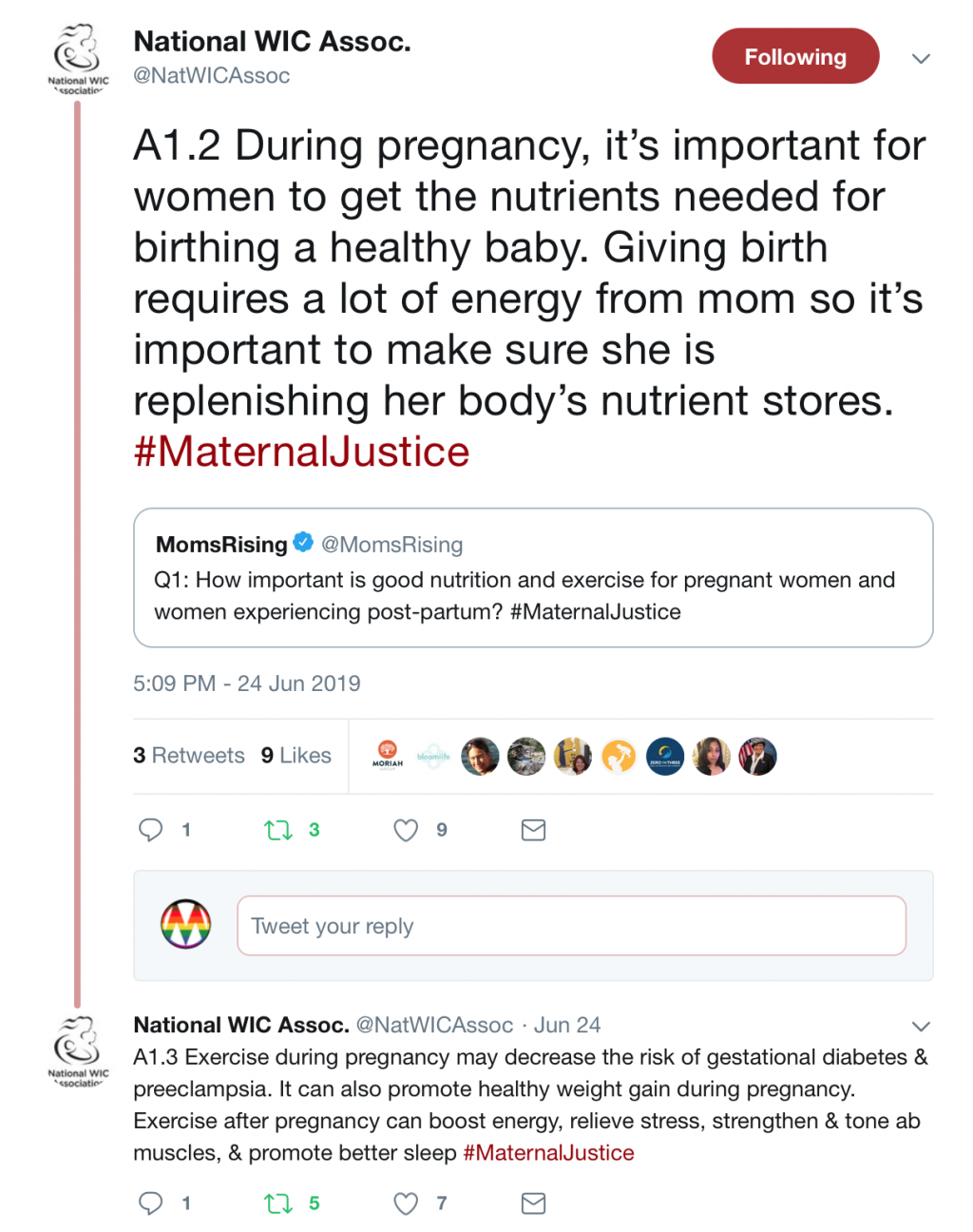 This June we were joined by special guests: Alma Adams of North Carolina (@repadams), Food Research and Action Center (@fractweets), National WIC Association (@natwicassoc), Black Women's Health Imperative (@blkwomenshealth), the Center for American Progress (@amprog), and of course, MamasConPoder (@mamasconpoder)! We discussed resources around the Child Nutrition Act and nutrition tips for pregnant women and women experiencing post-partum. Check out some of the tweets below and follow us on Twitter, @MomsRising!