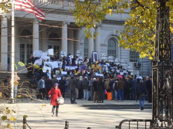 A crowded rally was held Tuesday on the steps of City Hall in support of a paid sick leave bill currently pending before the City Council. The pending legislation was introduced in August by Councilwoman, Gale Brewer.