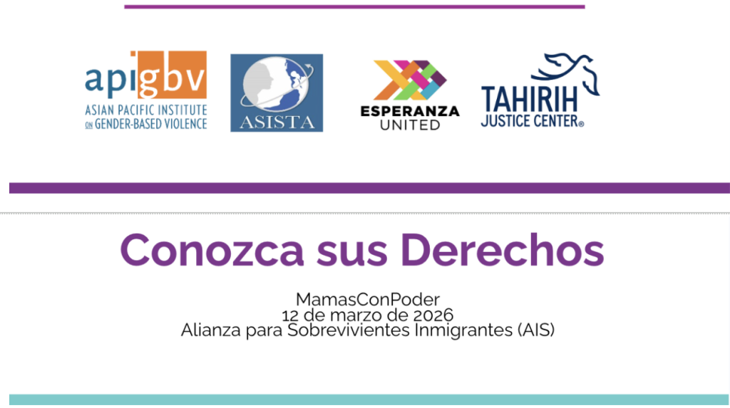 Taller de “Conoce tus derechos” Alianza para Sobrevivientes Inmigrantes (AIS) y MamásConPoder- Reunión Comunitaria de marzo