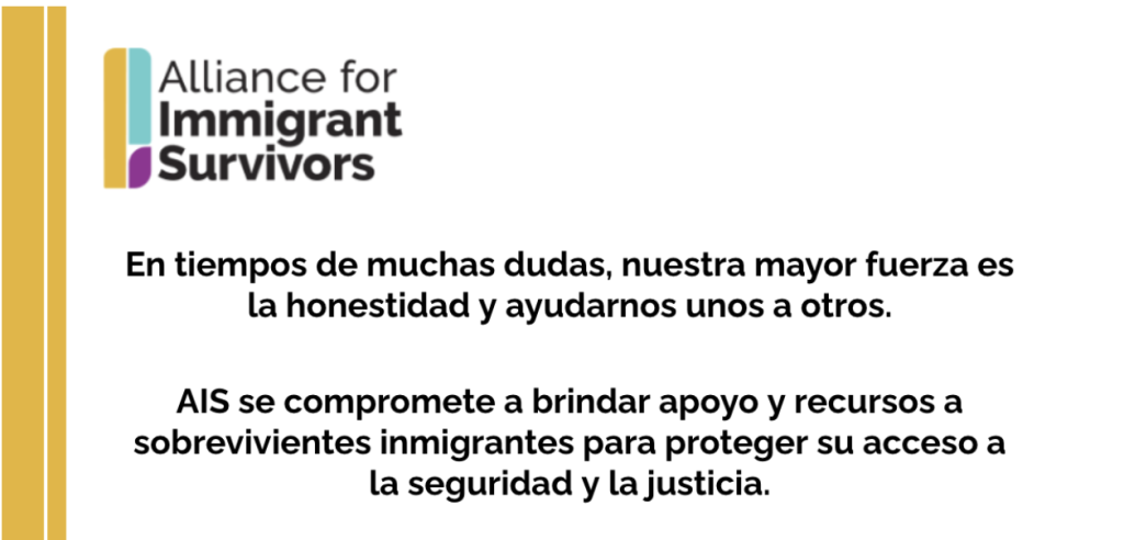 Las organizaciones que conforman AIS - Alianza para Sobrevivientes Inmigrantes y con las que estamos sumamente agradecidas son: